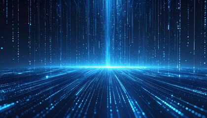 A digital landscape featuring glowing blue particles and lines, creating an ethereal, futuristic atmosphere reminiscent of a sci-fi environment.