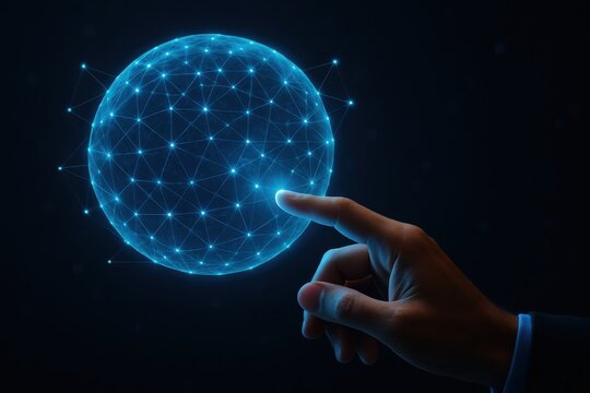 Interactive digital interface, global network, data connection, technology, communication, innovation.