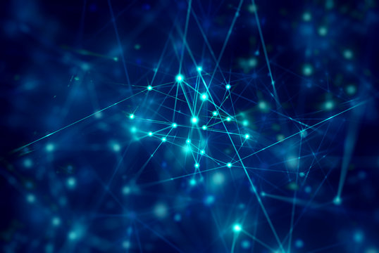 Abstract molecular structures on blue gradient