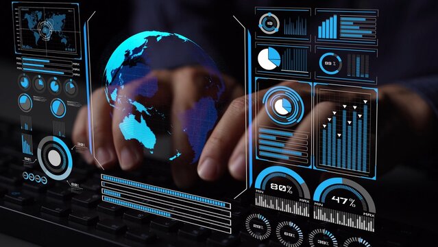 Digital Global Map Interface With Data Nodes And Analytical Visualization Images