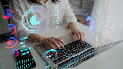 Futuristic digital globe with data analytics and code interface 2005-2021