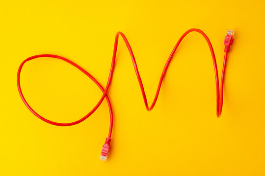 Network cable on yellow background studio shot