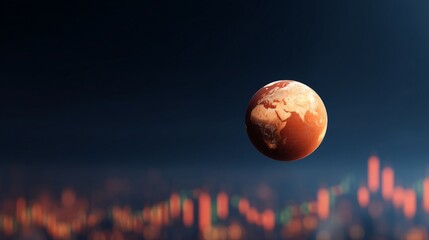 Global Economy and Trade Integration, A globe with a textured surface floats above a blurred cityscape with colorful lights.