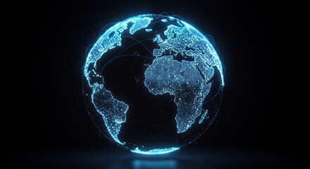 Lines of light connect various points on a globe, focusing on Africa and the Middle East, creating a network effect