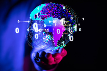 Futuristic digital globe in abstract dark space