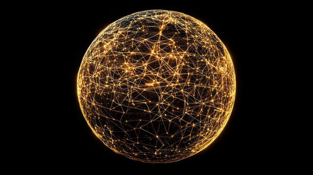 Connected network sphere glowing on dark