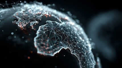 A glowing digital Earth encircled by a network of interconnected nodes, symbolizing global connectivity and data flow.  The dark background enhances the futuristic feel.