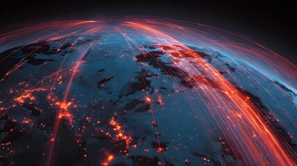 Stylized earth with data streams visual representation of global technology