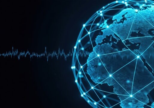 Global network of data streams creating a futuristic digital world. Representing the interconnectedness and flow of information across the planet