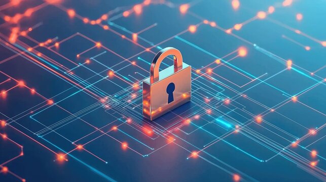 Illustration of data streams and a central lock icon, indicating secure concept