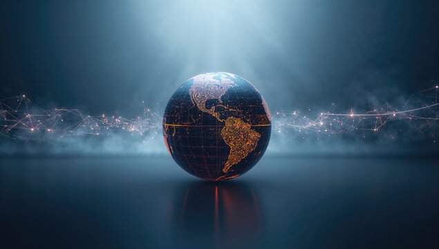 Digital globe with tech data echoing global connections