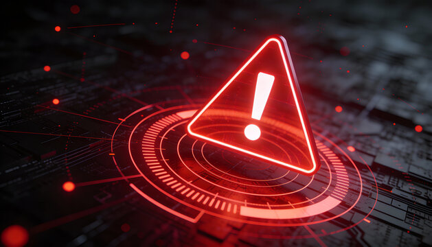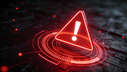 Futuristic user interface with red alert on suspicious transaction, holographic grid background, AI fintech protection