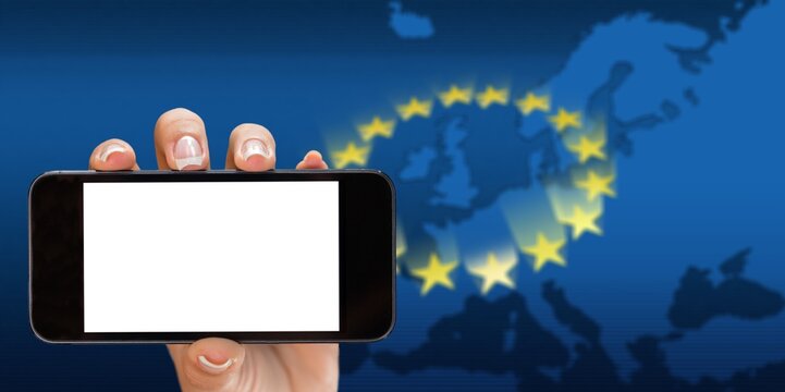 View over shoulder of a female hand holds with immune digital health passport for coronavirus, valid digital vaccination certificate. Digital vaccination passport for COVID19 for travel