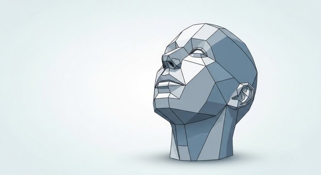 Wireframe Head Model in Blue - Technology and Futuristic Concept