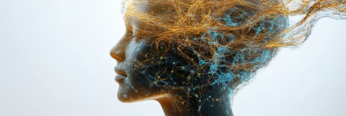 Profile of a human head with intricate neural networks and glowing synapses, representing AI and cybernetics. GenerativeAI