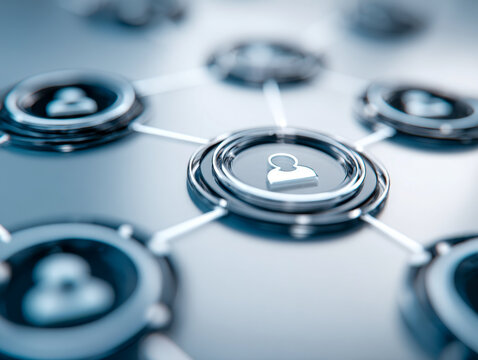 Digital interconnected network with human icons symbolizing communication and collaboration in a futuristic technology concept background