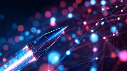 Advanced metallic missile with enhanced aerodynamic features. Futuristic system. Matte finish missile with blue fins and aerodynamic refinements explored. Tech innovation. Neural connections.
