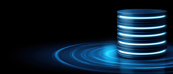 Futuristic glowing blue server icon representing secure data storage concept