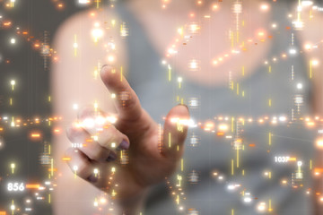 Digital image of the cloud technology. Cloud computing diagram hanging over hand. Networking and internet service concept. Business analysis, innovation, technology. Web services