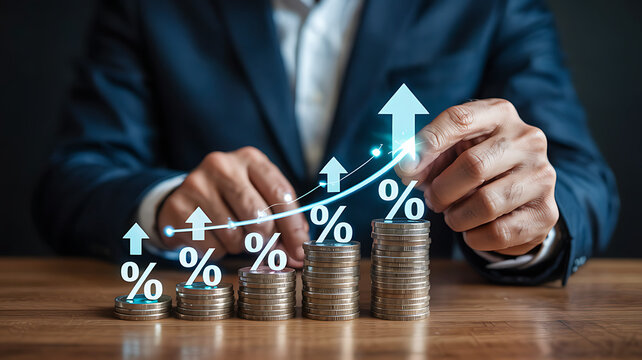 Arrow and statistics symbol on digital circuit board background