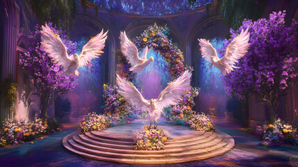 A futuristic digital art gallery in the metaverse, where avatars view and interact with virtual artwork on display