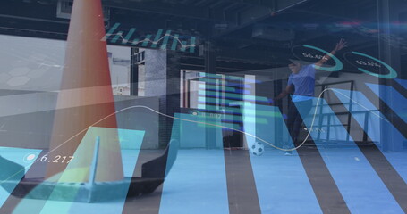 Image of statistics and graphs over man playing football