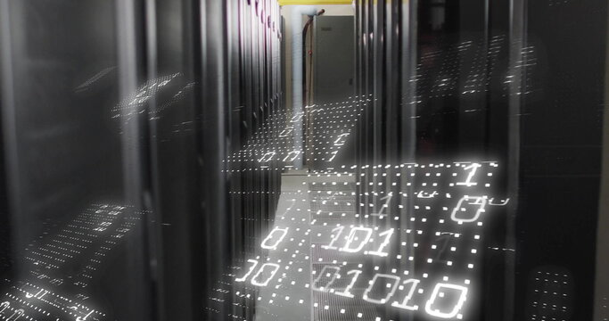 Image of data processing and spots over server room