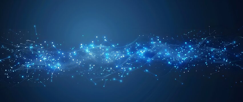 Abstract futuristic molecular structure with glowing hexagonal shapes and connecting lines on a blurred blue background.
