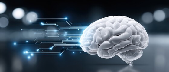 A digital illustration of a human brain with glowing circuit-like lines extending from it, symbolizing artificial intelligence and neural connections.