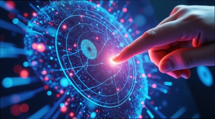 Glowing folder fingerprint data security digital file protection biometric identity access control cyber concept