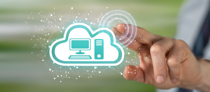 Man touching a cloud computing concept