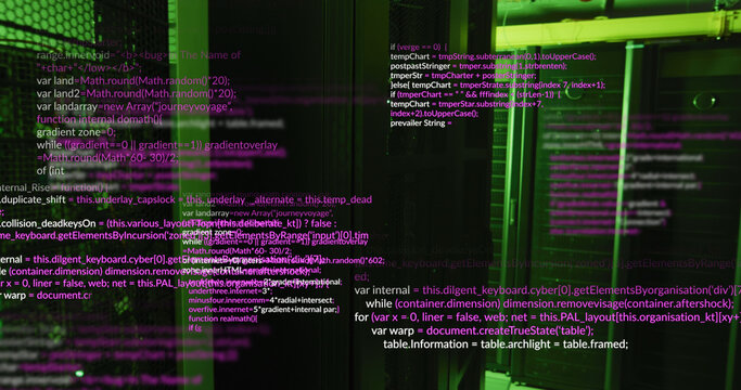 Inscription Big Data on Blurred Provider Room. Information technology 2021. Engineers in the server room.
