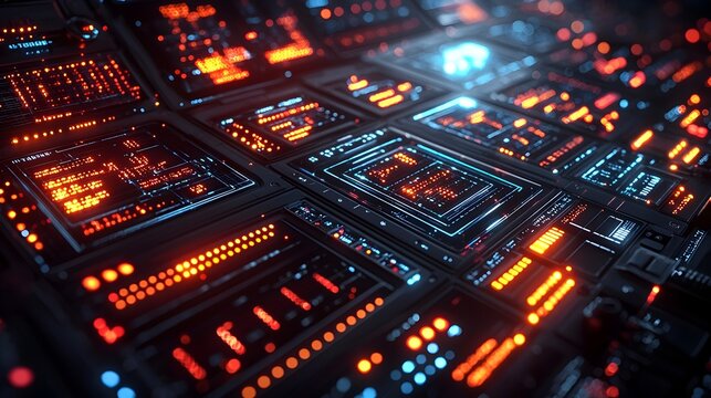 Abstract close-up of digital data streams with glowing orange elements on a dark background