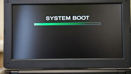 System boot screen on laptop showing progress bar during startup process in industrial power plant environment