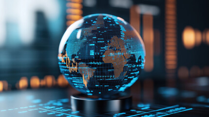 digital globe displaying fluctuating financial graphs, symbolizing global finance