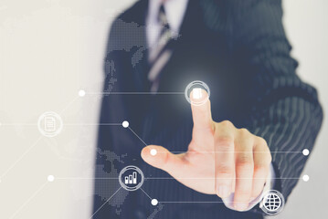 Digital transformation technology concept. change management, internet of things. enhancing global business capabilities. Ai, automate operation  by pressing the screen button..