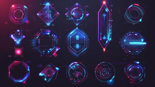 Advanced technology futuristic interface displaying digital information and neon blue lines, reflecting innovation and progress in science and cyber space