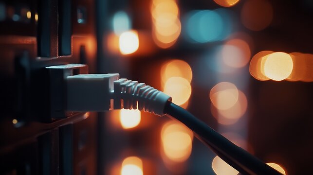 USB Cable Connected to Port with Lock Icon Illustrating Data Security and Transfer in a Modern Digital Environment