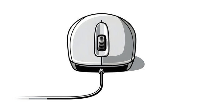 Gray Computer Mouse with Cord on White Background