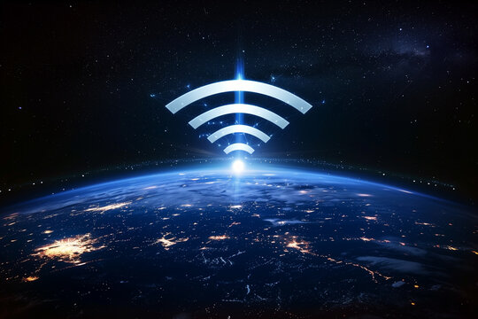 Close up view of a navigation pin marker on a blue glowing world map with soft lighting and futuristic design elements representing global positioning and digital location tracking technology