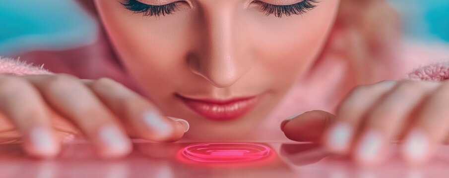 Experience the Future of Finance A Woman's Gaze at Advanced Virtual Wallet Digital Payment Solutions Witness AI-powered Seamless Authentication merging with ultra-secure Encrypted Transactions, all