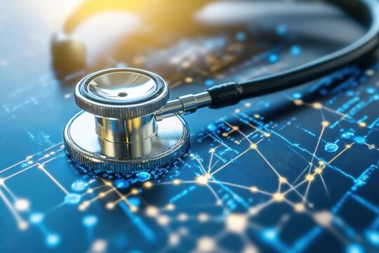 Stethoscope on a digital interface, symbolizing modern healthcare technology and data integration