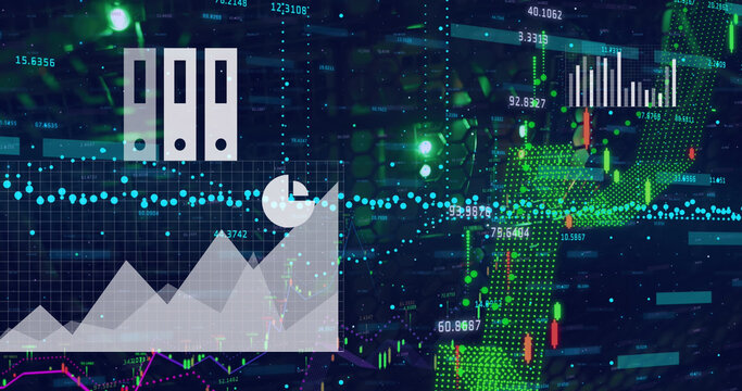 Digital Interface Over Server Room With Data Processing Graphics Images