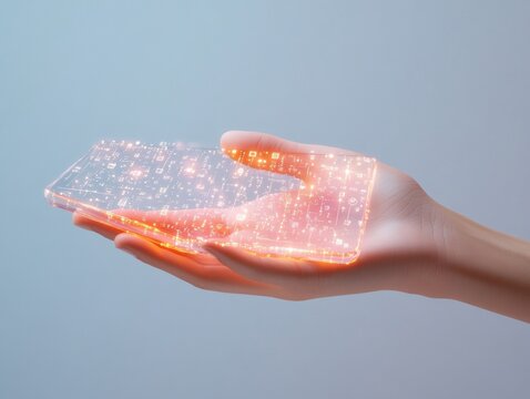 Smiling professional engaging in futuristic mobile interaction