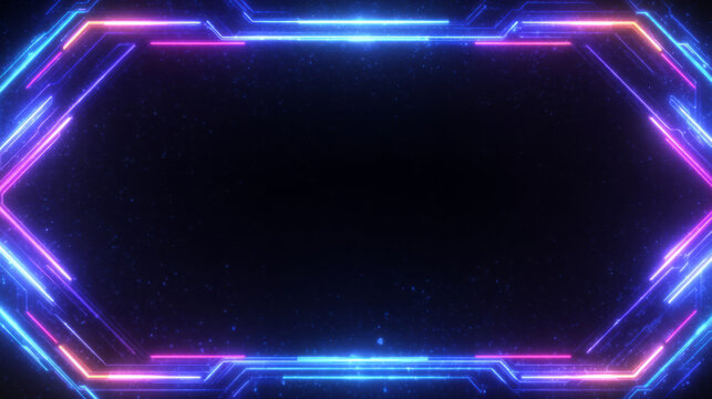 Cyberpunk HUD Frame: Futuristic, vibrant pink and blue neon lights illuminate a sleek, geometric frame, perfect for overlaying game interfaces, presentations.