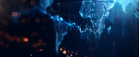 Global financial data visualization with graph and digital interface