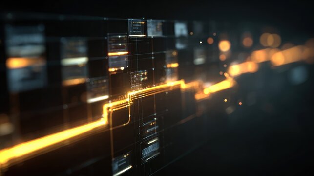 Close-up of futuristic digital interface with glowing data panels and sleek technology design