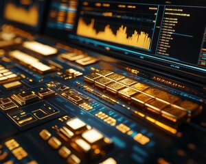 gold price, value, policy Futuristic digital interface showcasing data analysis and processing tools.