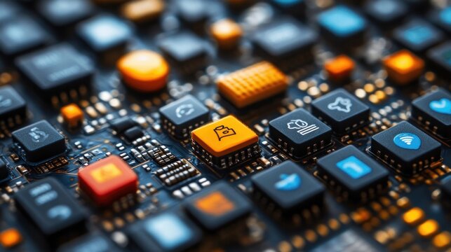 Abstract digital interface with technology icons