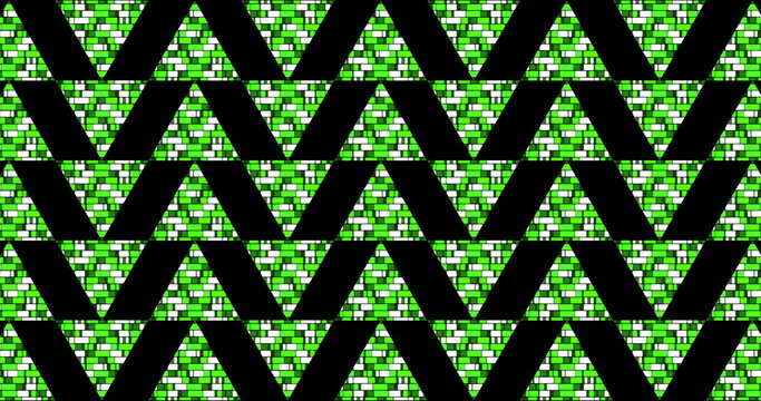 Image of green triangles moving on black background